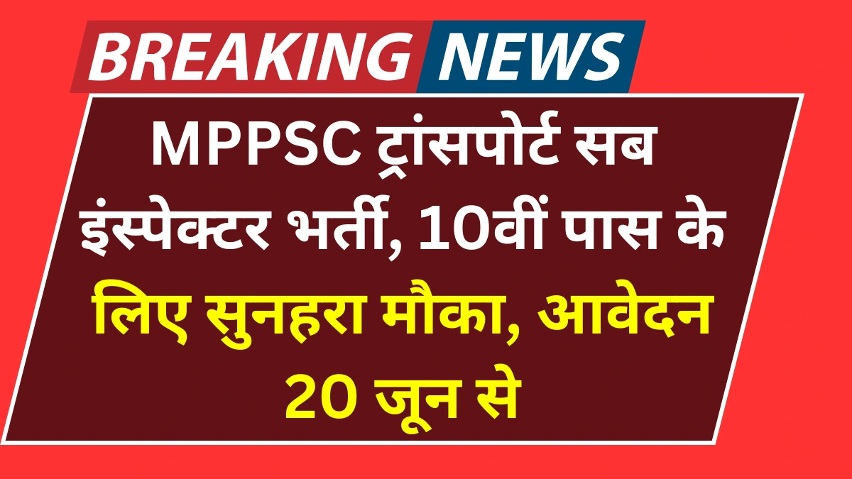 MPSC Recruitment 2025: MPPSC ट्रांसपोर्ट सब इंस्पेक्टर भर्ती, 10वीं पास के लिए सुनहरा मौका, आवेदन 20 जून से
